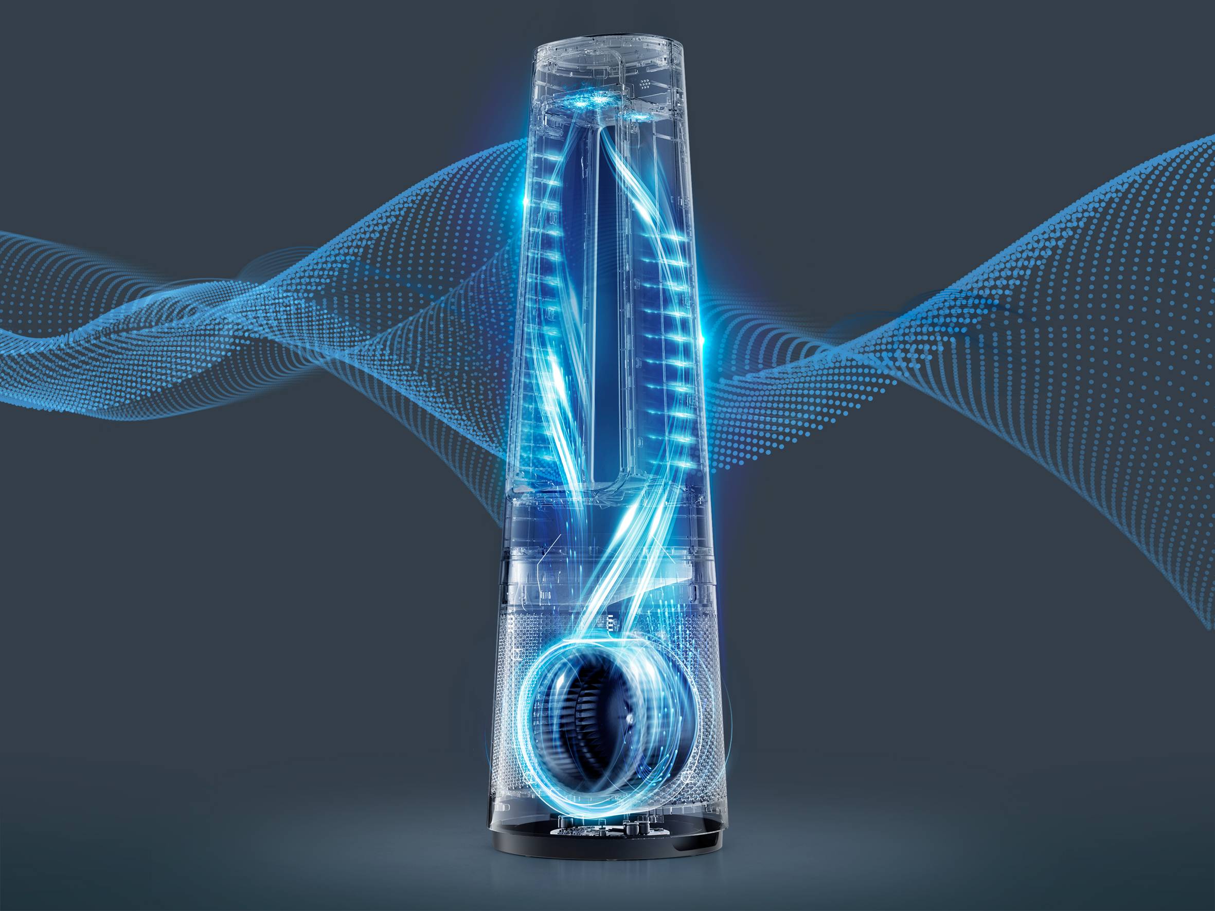 Dopřejte si čistý vzduch a vynikající osvěžení v jediném přístroji! Elegantní sloupový ventilátor Eclipse 3v1 poskytuje silný proud vzduchu a optimální pokrytí s nerušivým tichým chodem. Objevte personalizované osvěžení přizpůsobené všem potřebám díky řadě rychlostí, režimů a úhlů oscilace. Dvouúrovňový filtrační systém zároveň vytváří neustálý proud čistého vzduchu - pro větší pohodlí po celé léto.