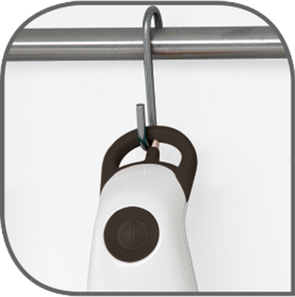 Má zabudovaný nástěnný háček, který šetří místo ve skříňce a zajišťuje, aby byl mixér vždy po ruce, když jej budete potřebovat.