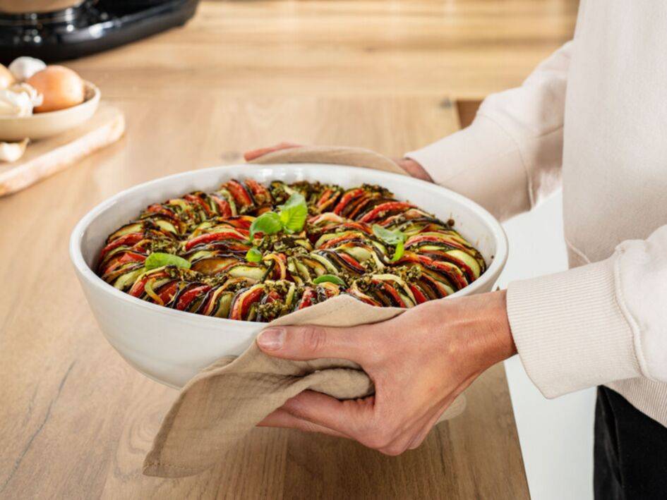 Upusťte uzdu své kreativitě se svojí sadou příslušenství a vyzkoušejte recept na tian, který najdete v aplikaci Tefal. Neváhejte a sdílejte své oblíbené recepty v aplikaci!