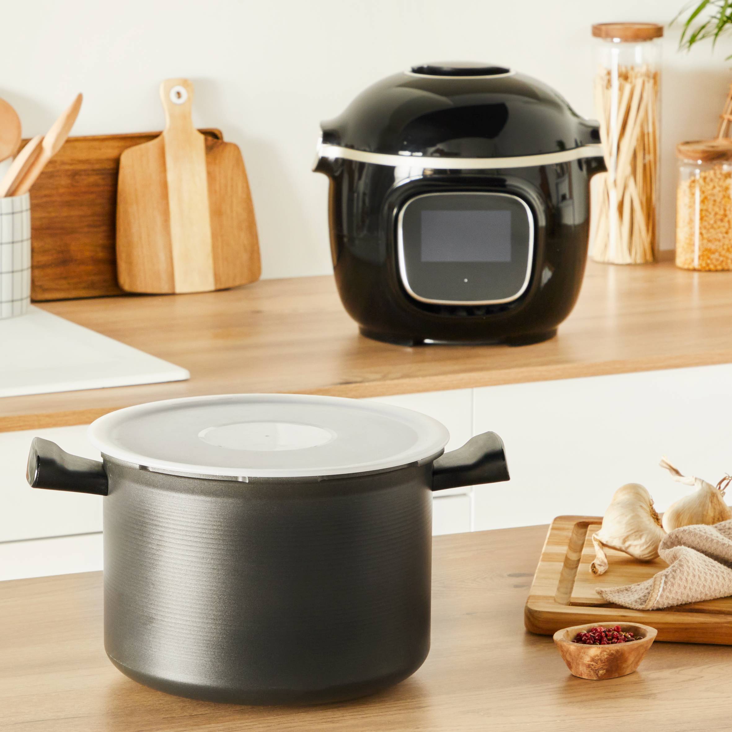 Víko pomáhá uchovat chuť vašich pokrmů a udržet je v chladu v lednici. Nasadí se přímo na vnitřní nádobu hrnce Cook4me 6L.