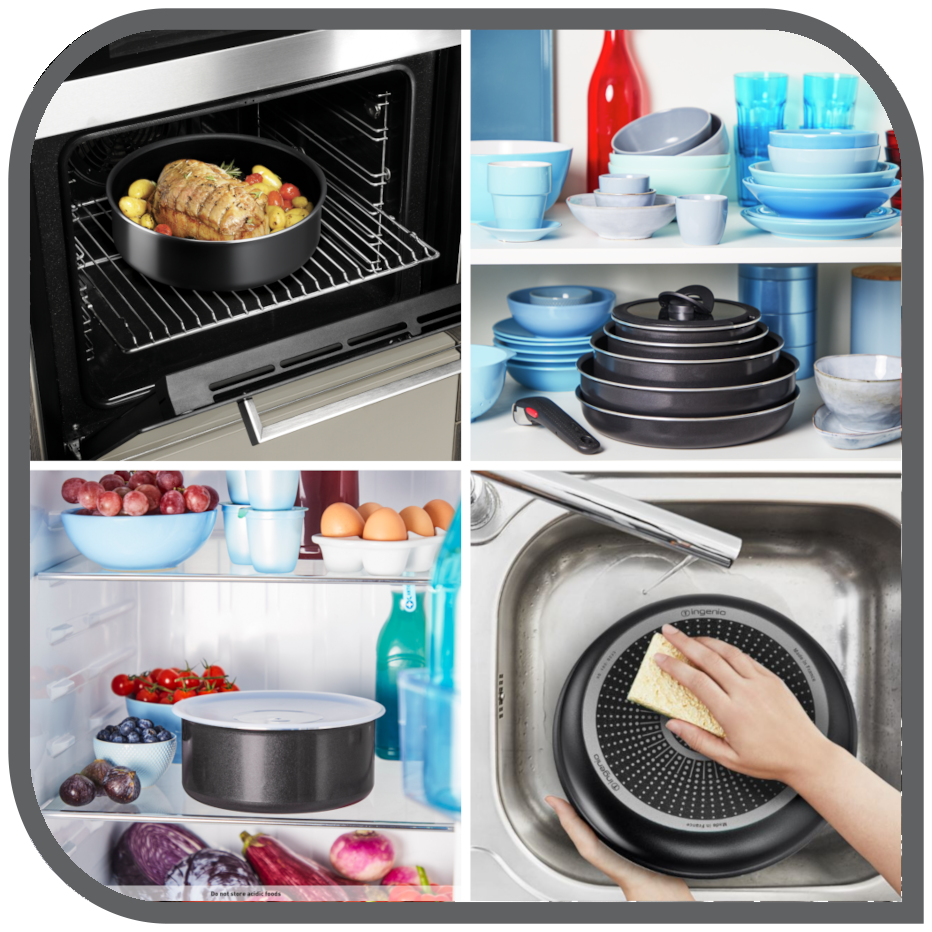 Nádobí Ingenio bylo vyrobeno k zjednodušení vaření. Zapněte vařiče, rozehřejte troubu a uložte zbytky přímo do chladničky* díky praktické odnímatelné rukojeti, která je víc než pouhou vychytávkou: zvláště bezpečný 3bodový bezpečnostní systém, který unese až 10 kg** a ochrana naší 10letou zárukou***. Ingenio šetří čas a energii v kuchyni každý den. Nová sada nádobí na vaření Ingenio Easy Cook & Clean dosahuje výborných výsledků bez námahy. Objevte nádobí na vaření s nepřilnavým povrchem uvnitř i vně pro snadné a bezstarostné čištění, které už nemůže být jednodušší. Vysoce kvalitní povrch Titanium má vysokou odolnost, zatímco dno s funkcí rozptýlení tepla zajišťuje optimální vedení tepla pro rovnoměrně uvařené jídlo. Při lahodném domácím vaření nelze nic ošidit, ať už jde o každodenní pokrmy uvařené od základu nebo víkendové hostiny pro celou rodinu. Značka Tefal nabízí nádobí na vaření, které urychlí proces čištění, takže získáte více času na to, co je opravdu důležité.