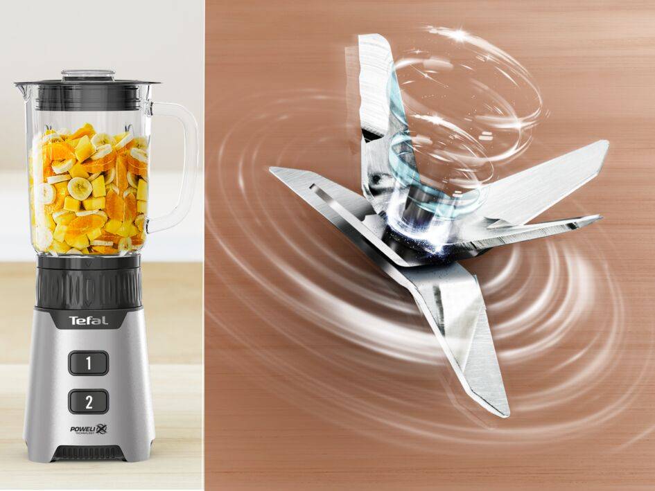 Inovativní technologie čepelí Powelix Odborníci značky Tefal vytvořili technologii čepelí Powelix - kombinace výkonného motoru a nerezových ostrých čepelí Powelix ještě více posiluje mixovací výkon, abyste mohli během chvilky dosáhnout dokonalých výsledků. Od smoothie nabitého živinami až po čerstvé ovocné koktejly. Čepele Powelix si hravě poradí s každou surovinou.