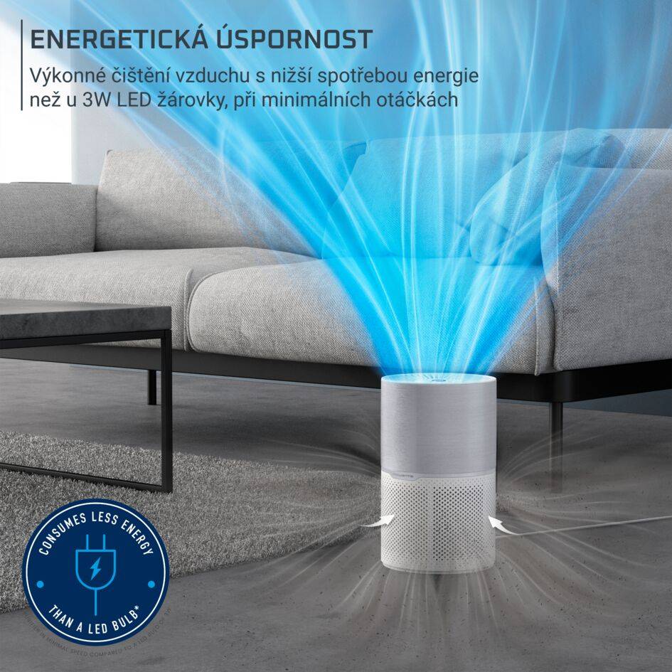Pure Air Compact spotřebuje méně energie než 3W LED žárovka při minimálních otáčkách — a přitom všude poskytuje vysoce účinné a výkonné čištění vzduchu. Ideální volba pro nepřetržitý provoz ve dne i v noci, která zajišťuje optimální kvalitu vzduchu a skutečné úspory energie.