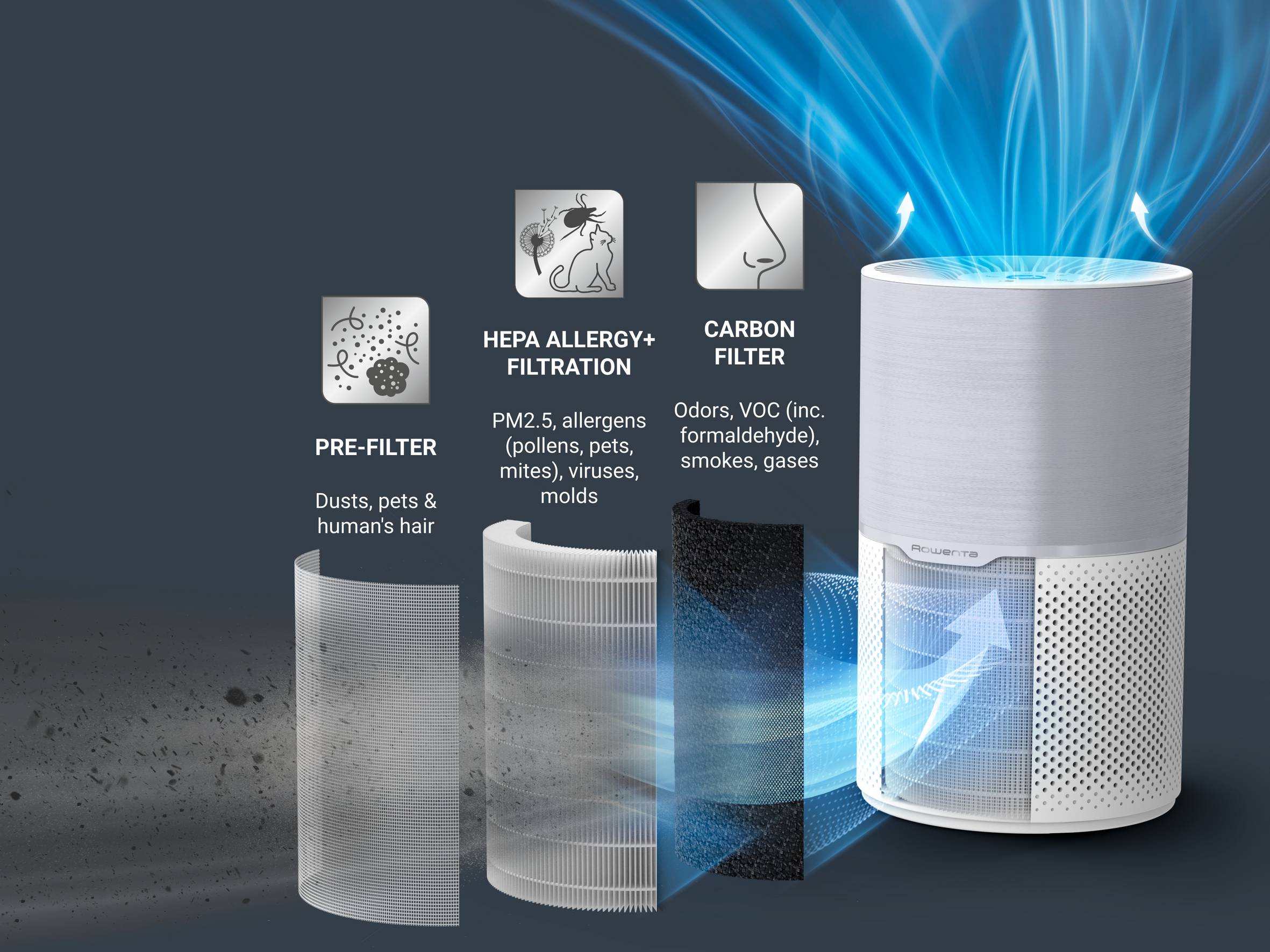 Výhody výrobku Čistička vzduchu Rowenta Pure Air Compact PU2220F0
