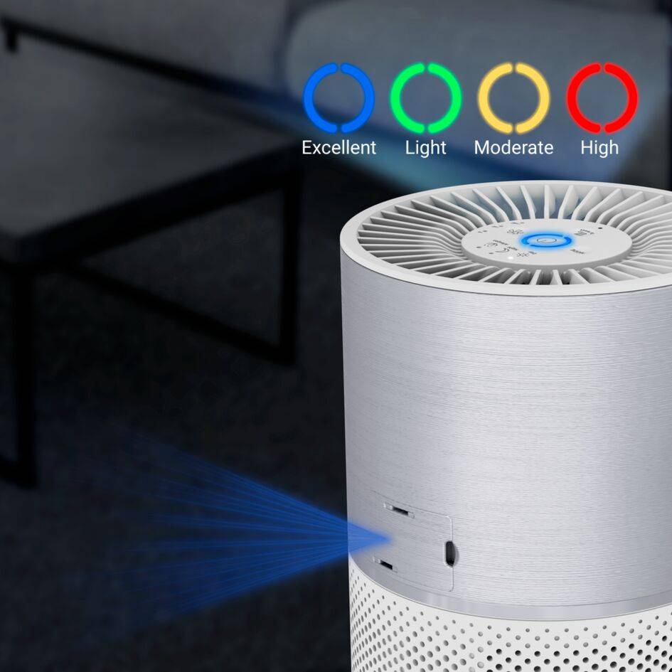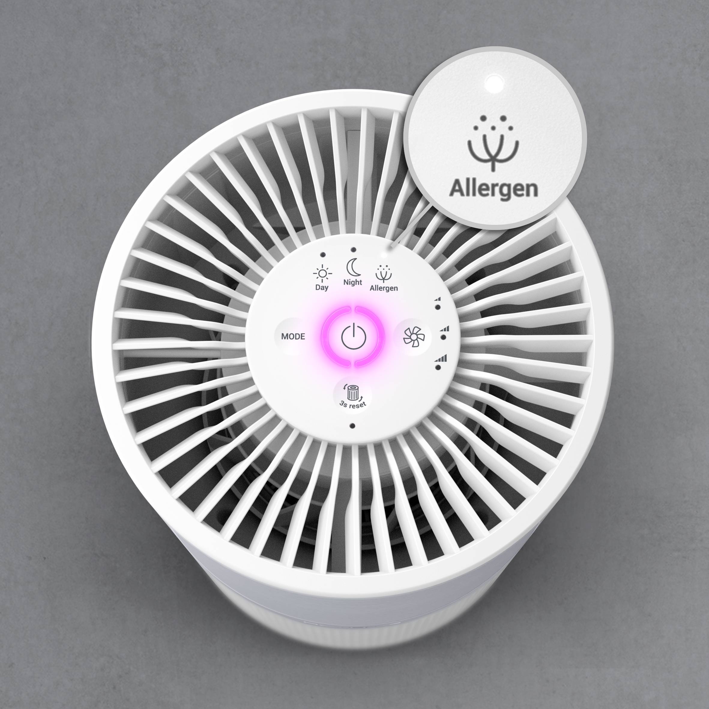 Objevte Pure Air Compact, výkonnou čističku vzduchu 3v1 HEPA Allergy+ filtration pro výjimečnou průběžnou filtraci vzduchu a vynikající pohodu. Tato domácí čistička vzduchu je rychlá a vysoce účinná proti alergenům, 99,99 % virů a pachů. Je vybavena funkcí indikace kvality vzduchu v reálném čase a denními/nočními režimy, které automaticky přizpůsobují rychlost filtrace pro optimální účinnost. To vše bez narušení vašeho spánku.
