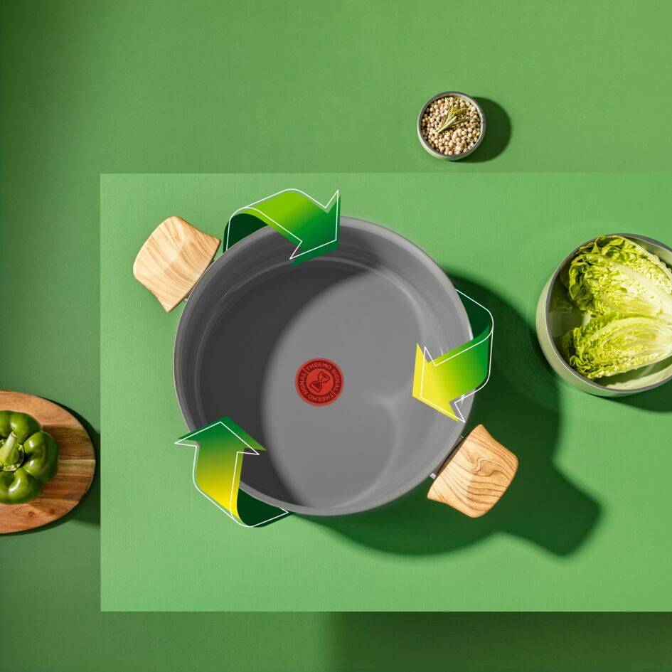 Lepší vaření s menšími dopady na životní prostředí! V nádobí Renewal se snoubí inovace s nižší ekologickou stopou na cestě za novým způsobem vaření. Objevte snadné a zdravé vaření s minimem tuku díky nové generaci nepřilnavého keramického povrchu, který je vytvořen pro dlouhou životnost. Tento kastrol, který se snadno čistí a je kompatibilní se všemi varnými deskami, umožňuje díky ukazateli Thermo-Signal™ připravovat dokonalé a lahodné pokrmy a vyznačuje se elegantním designem vyrobeným ve Francii.