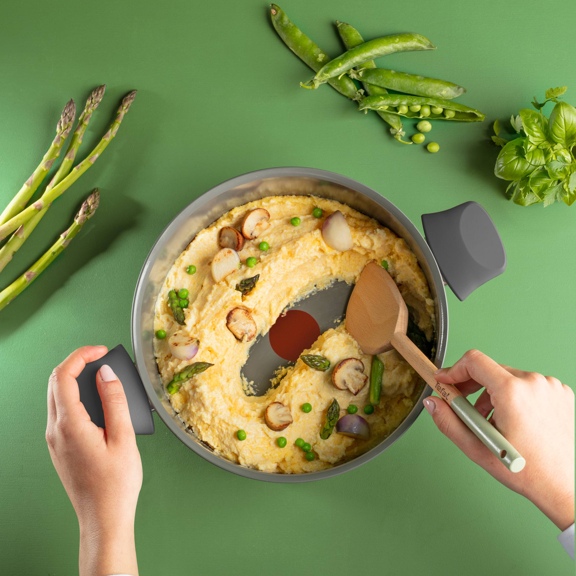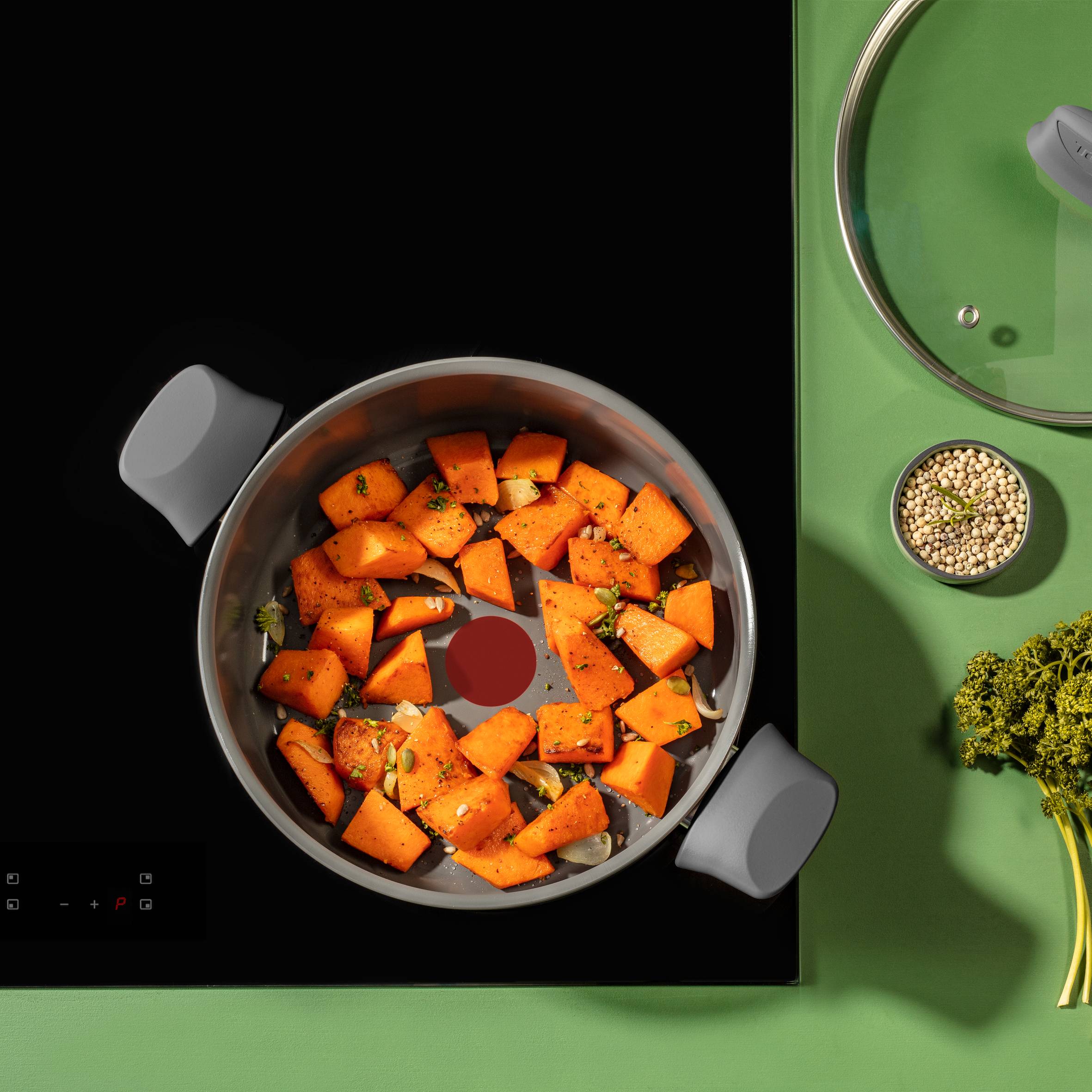 Kastrol díky nepřilnavému keramickému povrchu nové generace zajistí každodenním snadné vaření, abyste mohli snadno připravovat zdravé pokrmy na minimu tuku. Nižší dopady na životní prostředí díky konstrukci* ze 100% recyklovaného hliníku, recyklovatelný výrobek**, recyklovaný obal. Indikátor teploty Thermo-Signal™ změní barvu, když hrnec na dušení dosáhne ideální teploty na vaření, a zajistí tak dokonalé smažení Pokročilá indukční technologie Thermo-Fusion™ pro rychlý ohřev a rovnoměrné vaření, kompatibilní se všemi varnými deskami Skleněná poklice s výstupem páry pro snadnou kontrolu a až 27 % energie ušetřené při vaření Nepřilnavý keramický povrch na vnitřní i vnější straně pro snadné čištění každý den Vyrobeno ve Francii při dodržení nekompromisních standardů kvality a řemeslného zpracování Tefal, průkopník v oblasti nepřilnavých pánví, vyrábí své produkty s vysokou úrovní kvality a odbornosti Ideální tvar pro snadné dušení a vaření a odolný nepřilnavý keramický povrch v kombinaci s okraji ideálními pro nalévání