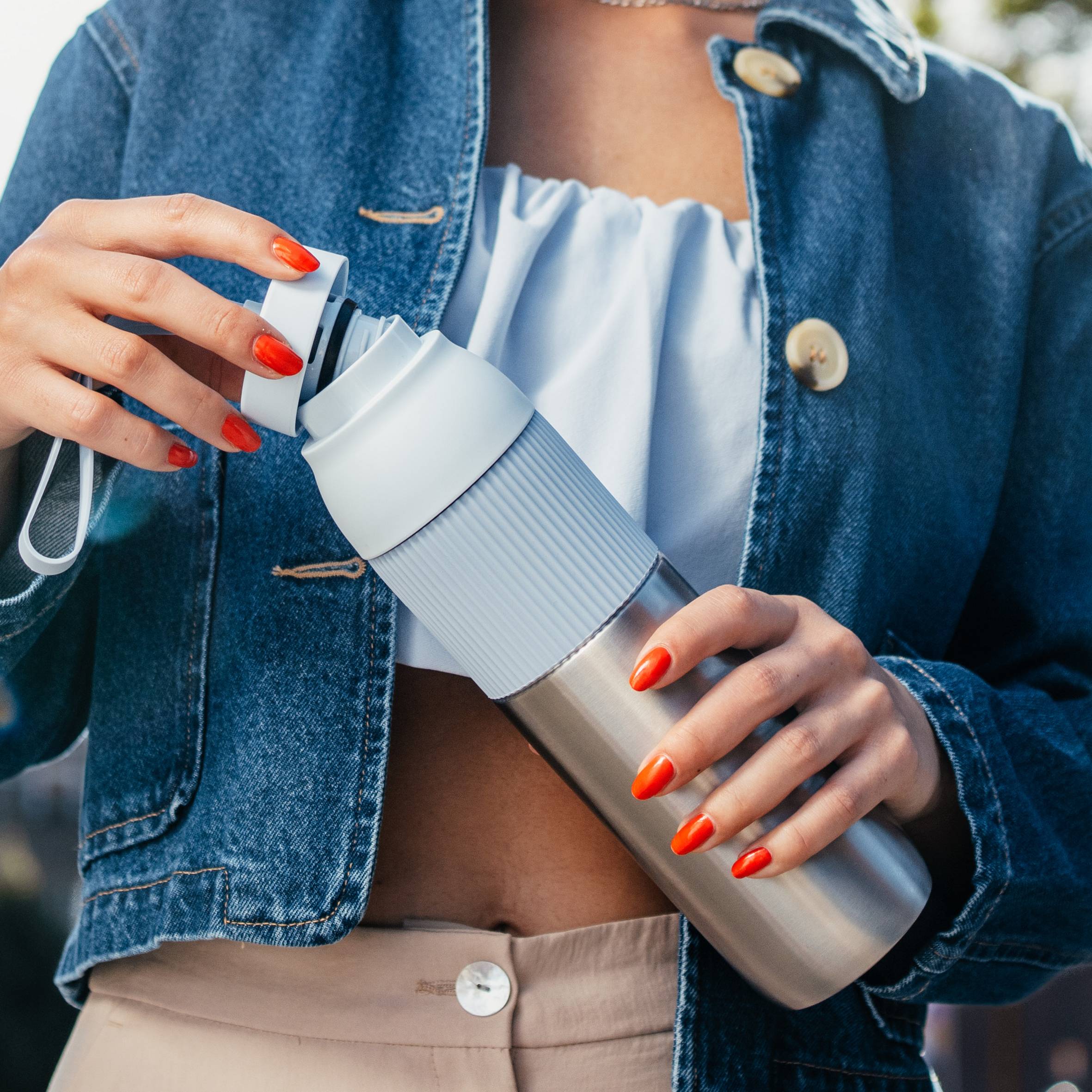 Kamkoliv se vydáte, beYou je tu pro vás! Naše stylová termoláhev pro hydrataci s otočným víčkem je ideální pro pití na cestách a 100% těsnění zajišťuje bezstarostný transport v tašce. Chráněný náustek a části vhodné do myčky zaručují dokonalou hygienu, zatímco vynikající izolace udrží horké nápoje déle teplé a studené nápoje déle chladné.