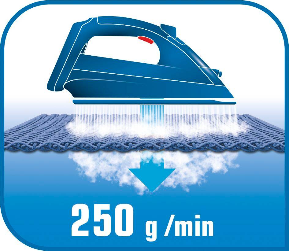 Žehlete rychle a efektivně díky nepřetržité produkci páry až 60 g/min. Pára proniká do tkaniny a uvolňuje vlákna, což usnadňuje žehlení záhybů.