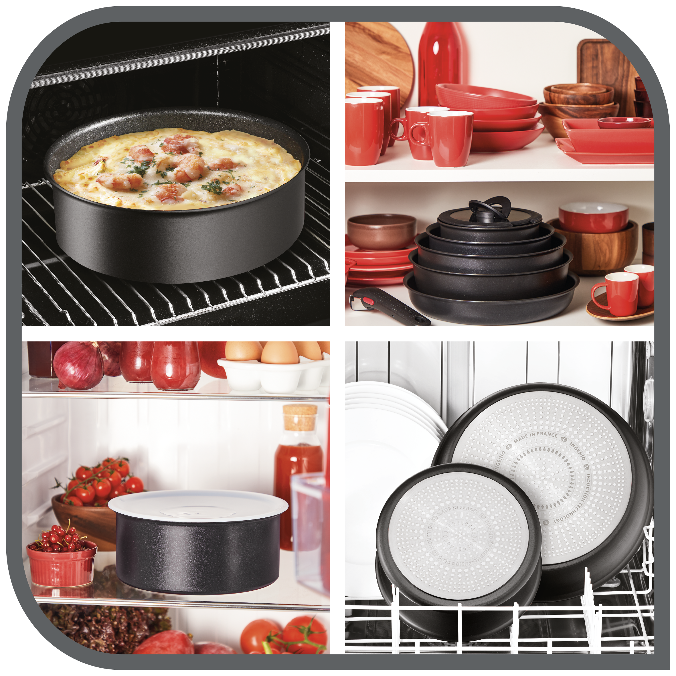 ZJEDNODUŠTE SVÉ VAŘENÍ: Přesouvejte nádobí na vaření z plotny do trouby a uložte zbytky do chladničky* díky systému odnímatelné rukojeti, který poskytuje výjimečnou praktičnost pro každý den. Zjednodušte své vaření s Ingenio! PROSTOROVÁ ÚSPORNOST: Díky prostorově úspornému, stohovatelnému designu se nádobí na vaření Ingenio prakticky vejde do kredencí, skříněk a polic. DOKOUPITELNÁ ZVLÁŠTĚ BEZPEČNÁ RUKOJEŤ: Bezpečná a patentovaná odnímatelná rukojeť (prodává se zvlášť) unese až 10 kg** a má 10letou záruku*** SNADNÉ ČIŠTĚNÍ vnější i vnitřní části: Snadné ruční mytí a vhodné mýt v myčce nádobí ODOLNOST PROTI POŠKRÁBÁNÍ: Nepřilnavý povrch Titanium 6X vydrží až šestkrát déle (v porovnání se standardním povrchem značky Tefal). Bezpečný nepřilnavý povrch, bez PFOA, bez olova, bez kadmia**** INDIKÁTOR TEPLOTY: Inovativní zóna Thermo-Signal™, která mění barvu, když je čas na vaření, a zajistí tak vždy dokonalé smažení KOMPLETNÍ KOMPATIBILITA: Kompatibilní s plynovými, keramickými a indukčními sporáky RYCHLÉ A ROVNOMĚRNÉ VAŘENÍ: Součástí je Thermo-Fusion™, prémiová indukční technologie poskytující rychlý ohřev a rovnoměrné vaření VYROBENO VE FRANCII: Navrženo a vyrobeno kompletně ve Francii při dodržení nekompromisních standardů kvality a řemeslného zpracování
