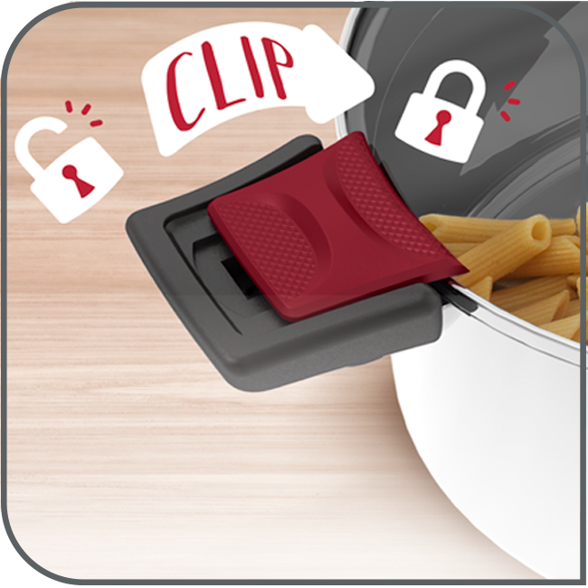 Se sadou nádobí Tefal Cook & Clip, díky inovativnímu hrnci bude vaření bezpečné a snadné! Geniální systém snadného zamykání udrží speciálně navržené napínací víko na místě, čímž eliminuje potřebu cedníků a držáku hrnce a zajistí bezpečné, inteligentní a snadné přecezení všeho, od těstovin a rýže po brambory a zeleninu. Ušetřete čas a energii v kuchyni při přípravě výborných a chutných jídel pro celou rodinu!