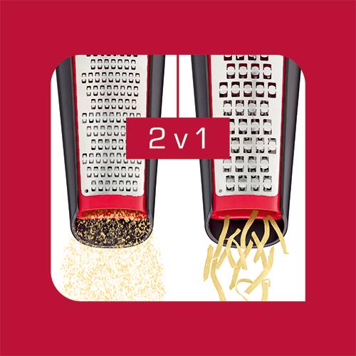 Usnadněte si přípravu pokrmů s tímto oboustranným struhadlem s vestavěnou nádobou pro snadné servírování Oboustranné struhadlo s oboustrannou strouhací plochou pro jemné i hrubé strouhání podle vašich představ Kuchyňské náčiní vhodné do myčky pro snadné čištění a mimořádně praktické každodenní použití Vyrobeno v souladu s normou kvality Tefal, na základě intenzivního testování v laboratoři před uvedením na trh.