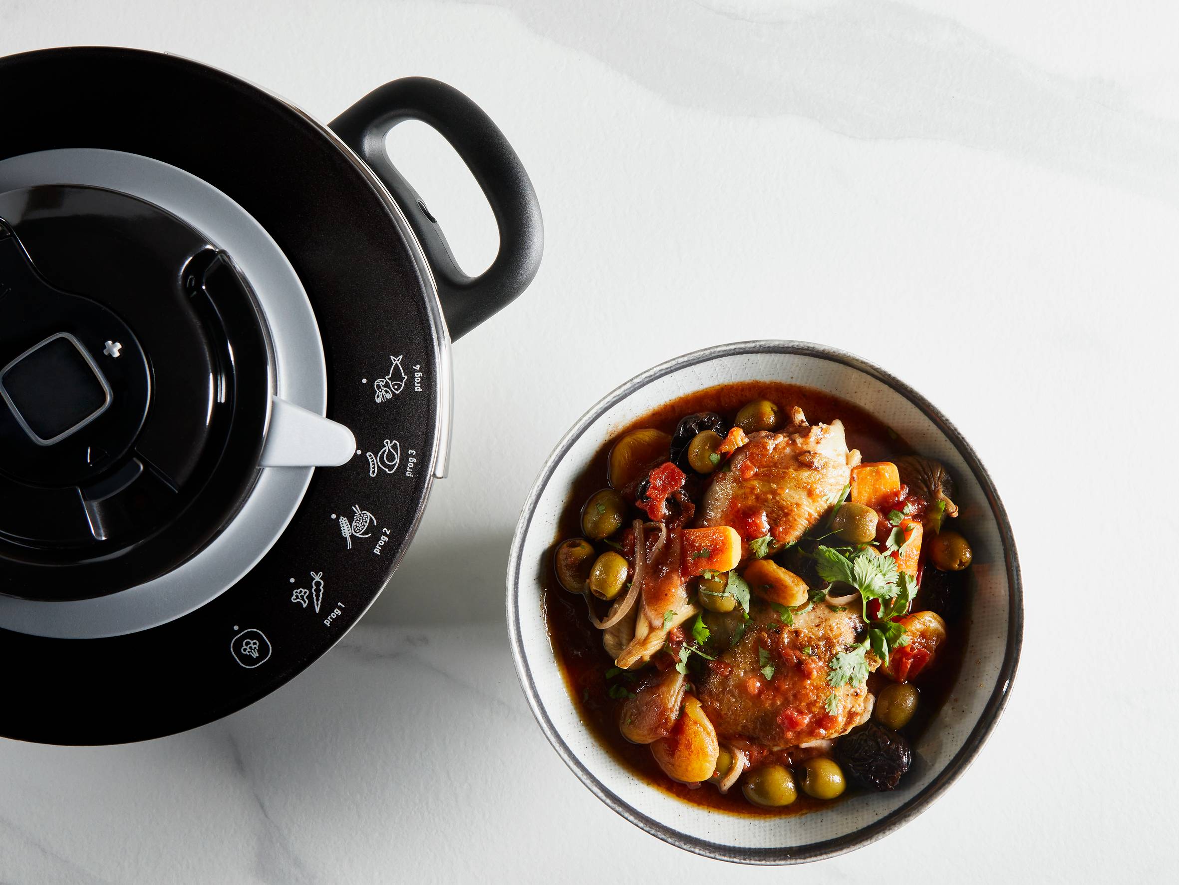 - Snadné ovládání - inovativní systém otevírání jednou rukou a 4 přednastavené programy pro různé druhy potravin usnadňují každodenní vaření