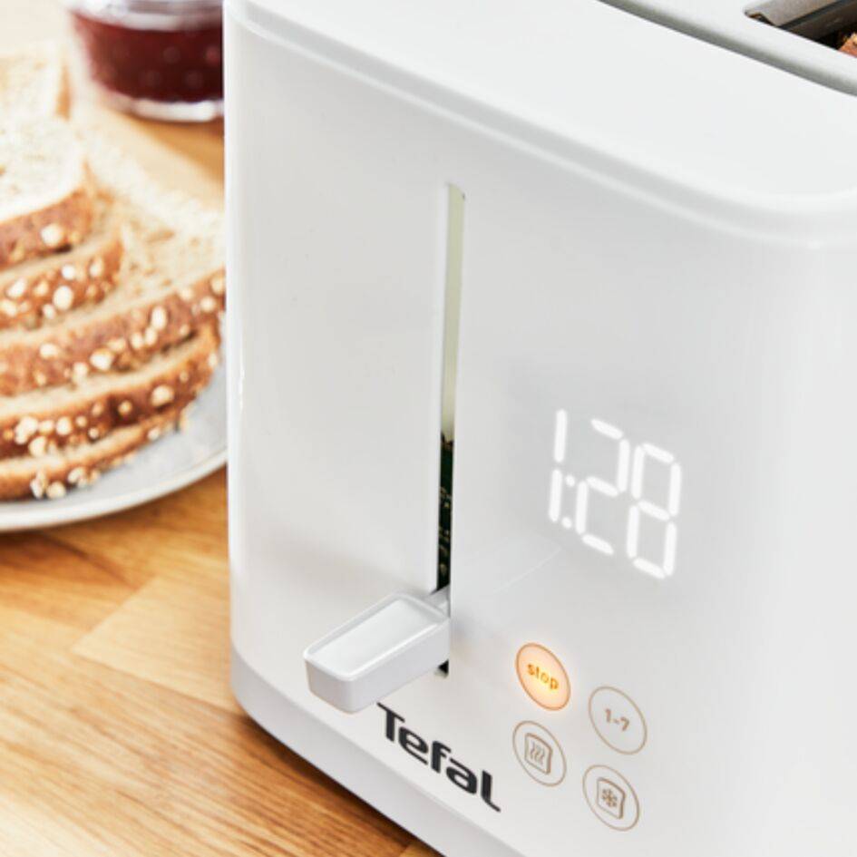 Vychutnejte si dokonale opečený toast, dokonale přizpůsobený vašemu vkusu: díky topinkovači Tefal, modernímu, intuitivnímu topinkovači, který je rafinovaný a moderní zároveň. Tento elegantní bílý topinkovač umožňuje uložit vámi preferované nastavení, takže stačí jediný dotyk a opečete si toast tak, jak to máte rádi. Obsahuje také praktický a minimalistický digitální displej, který uvádí živý odpočet doby opékání a má také řadu sedmi stupňů opečení, od světle zlatavého po extra křupavý – dokonalé nástroje pro výsledky podle vašich přání. K dalším praktickým funkcím patří samostatné funkce Stop, Rozmrazit a Ohřát se světelným indikátorem, nastavitelnou šířkou otvorů s automatickým zarovnáním toastu na střed, odstranitelným táckem na drobky pro snadné čištění a pákou s vysokým zdvihem pro snadné vyjmutí toastu. Navíc má vylepšený estetický a intuitivní design, který se skvěle hodí na kuchyňskou linku každé moderní a sofistikované kuchyně.