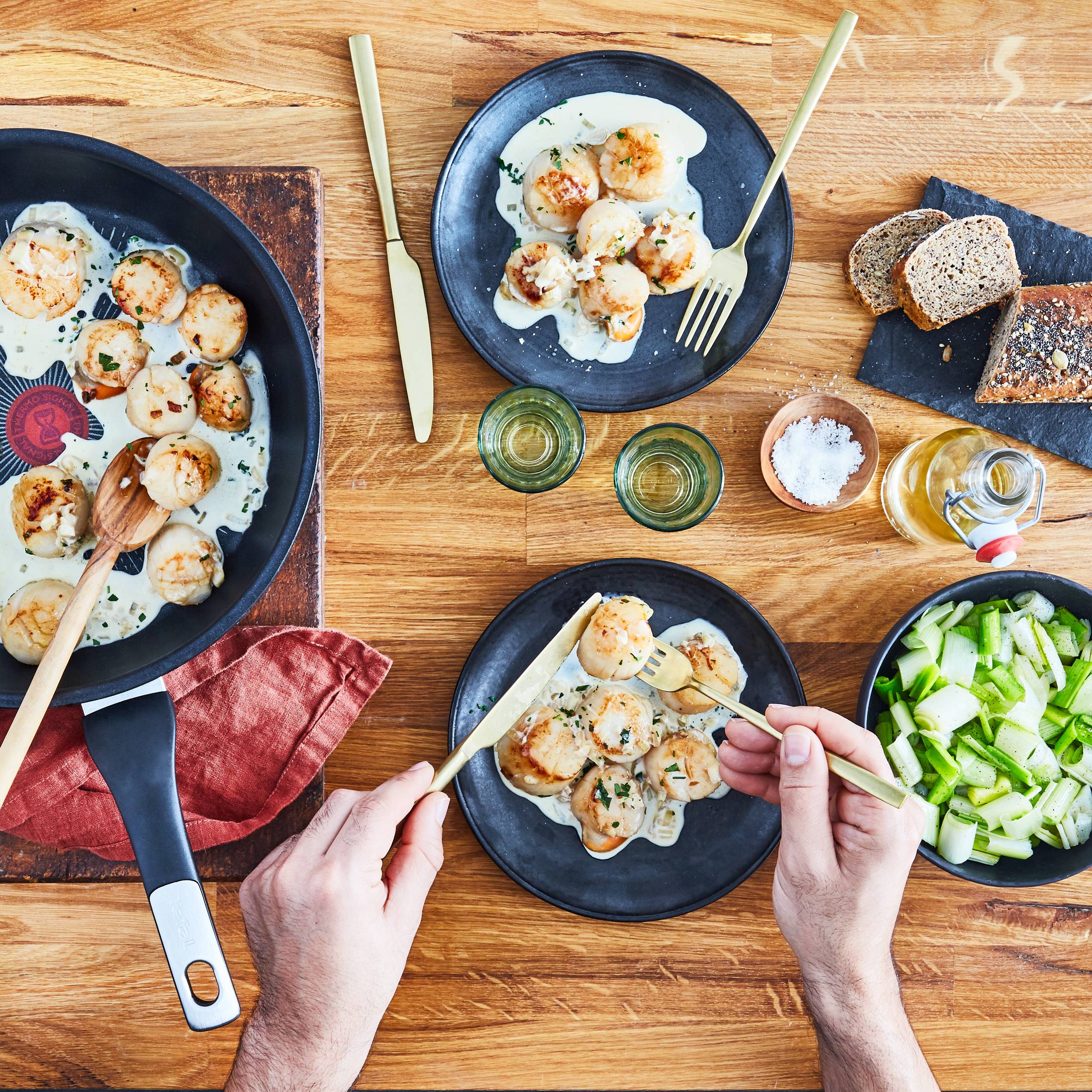 Masivní dno s hliníkovou slitinou perfektně akumuluje teplo a umožňuje precizní kontrolu teploty při různých kulinářských technikách. Ať už připravujete křupavé řízky nebo jemnou krémovou omáčku, pánev poskytuje profesionální výsledky.
