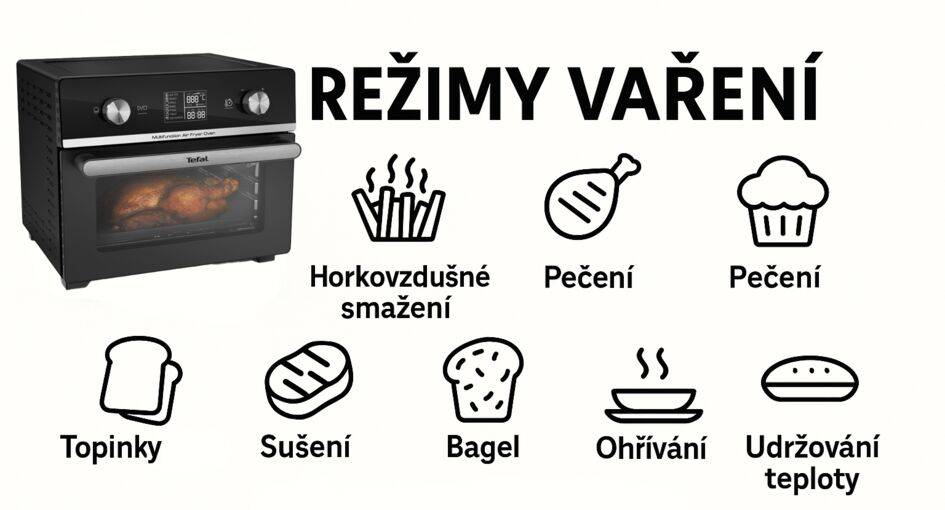 Multifunkční design navíc nabízí specializované programy pro různé typy pokrmů, od křupavých hranolků po šťavnaté maso. Na rozdíl od klasické trouby můžete snadno sledovat průběh přípravy přes průhledné víko.