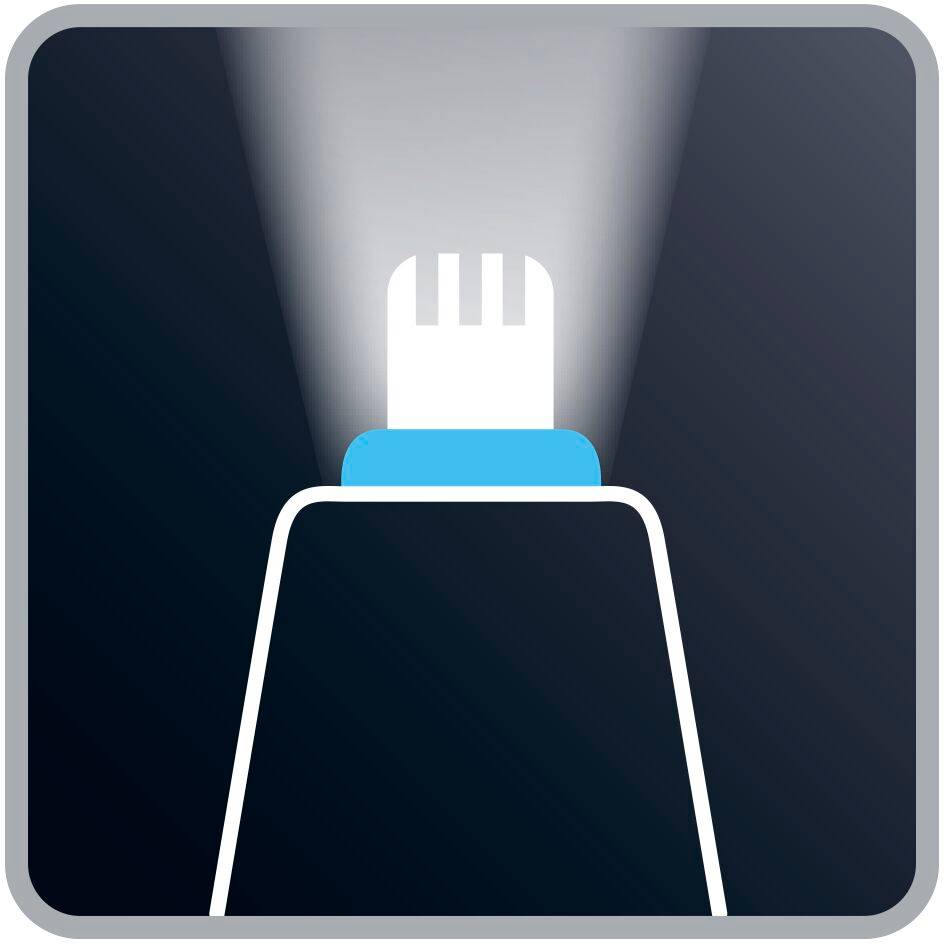 Rozlučte se s nevzhlednými chloupky v nose a uších díky zastřihovači Nomad. Jeho systém otočných čepelí s 360° rotací z nerezové oceli zajistí vždy bezpečnou a bezbolestnou úpravu a požadované výsledky. Ani ty nejjemnější chloupky nemají šanci: důmyslná technologie Vision osvětluje zastřihovanou plochu, aby nedošlo k vynechání žádných chloupků. Je 100% voděodolný pro snadné čištění a s až tříhodinovou provozní výdrží je zastřihovač Wet & Dry Vision připraven kdykoliv a kdekoliv.