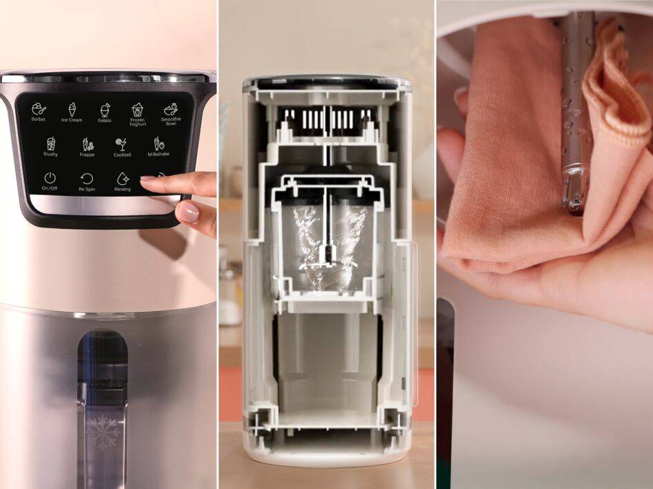 Zmrzlinovač s 10 programy v 1 pro nekonečné množství mražených pochoutek Speciální program na přísady Mix in, díky kterému si můžete zmrzlinu přizpůsobit podle chuti: přidejte například čokoládové kousky, gumové medvídky, mandle a další. Program automatického proplachu a úplný přístup ke každé části, která přichází do styku s potravinami — pro snadné čištění Jedinečná technologie 1-Step Perfector pro dokonale hladké a krémové výsledky v jednom kroku, bez nutnosti opakovaného zpracování Digitální kuchařka s 50 inspirativními recepty včetně receptů bez mléka, veganských, bez cukru, slaných a sladkých a mnoha dalších Připravte až 1,5 l pomocí 3 tritanových misek, které jsou součástí balení. Ať už pro vás samotné, nebo pro celou rodinu