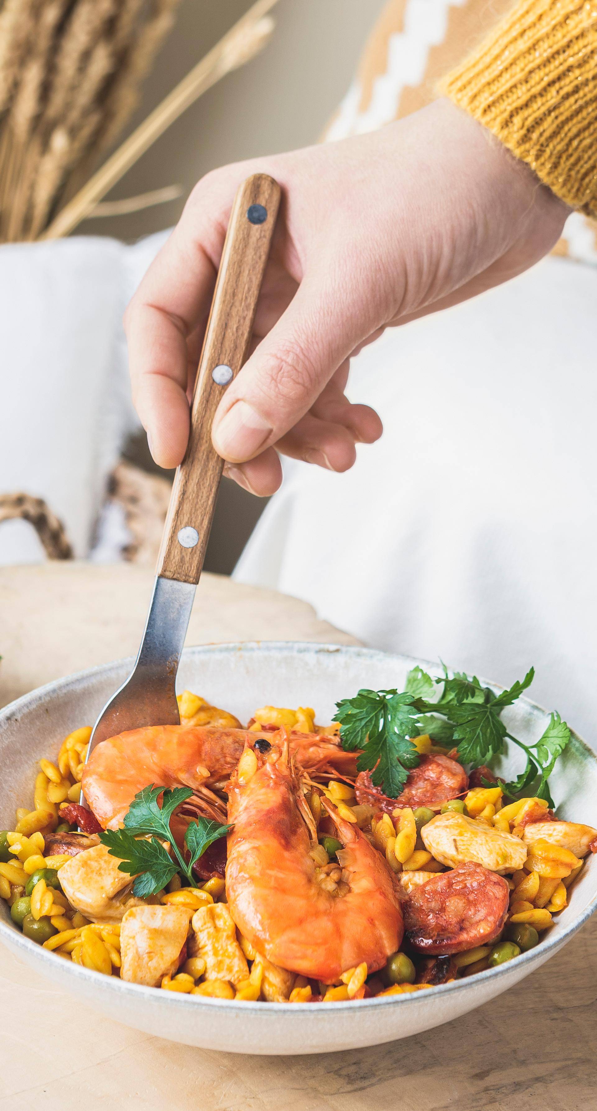 Přidejte chorizo, syrové krevety a edamame fazole.