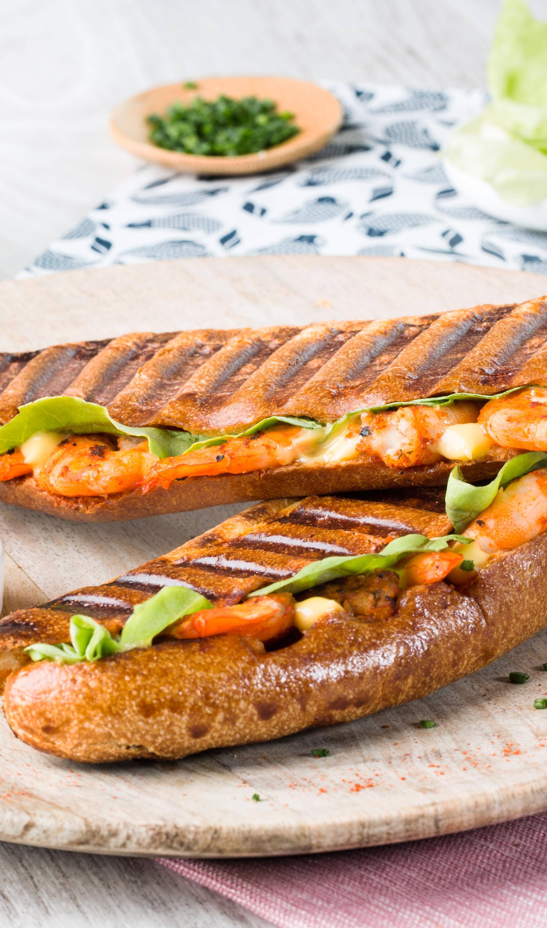 Hot dog s kořeněnými krevetami