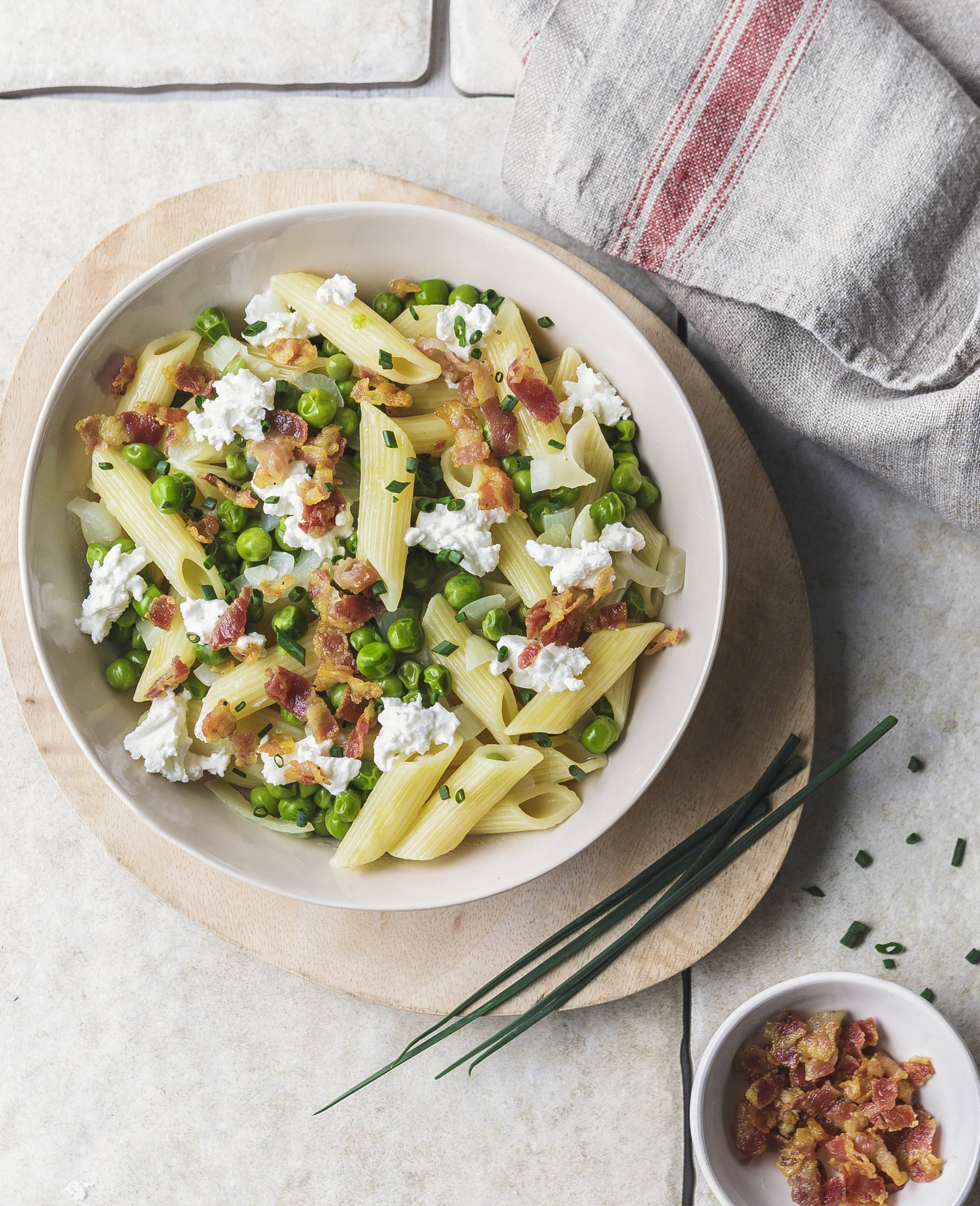 Těstoviny s hráškem a pancettou